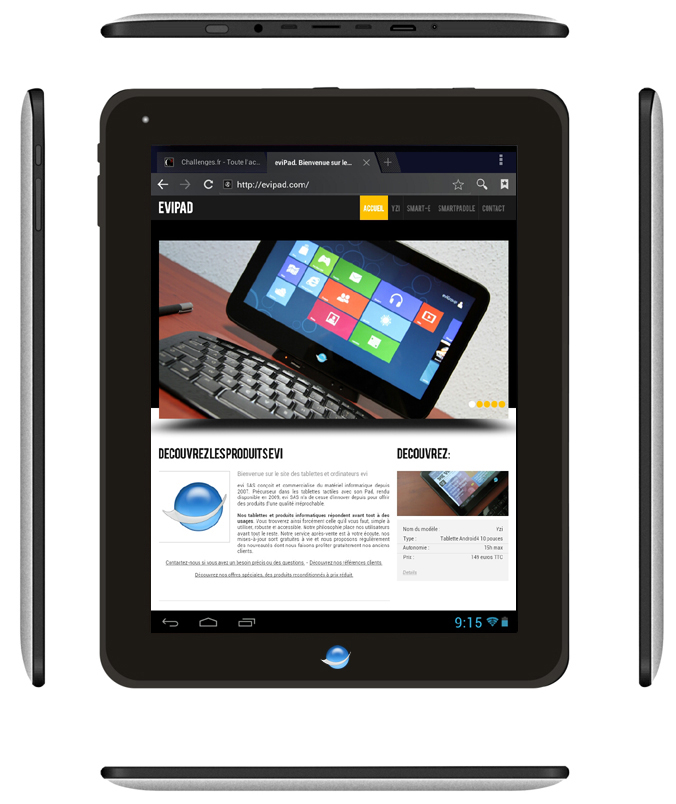 Elle bénéficie de l'expertise evi, qui a développé le PCB, et de ses centres logistiques. Elle est conforme aux normes CE et aux normes qualités de l'entreprise, déjà connue pour ses tablettes Pad.